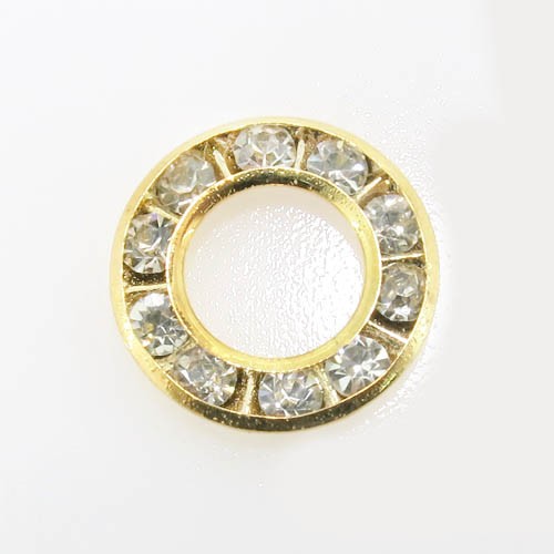 אפליקציה בצורת חישוק, צד קדמי משובץ בקריסטלי זכוכית, צד אחורי מעוטר במשולשים מוגבהים, בצבע זהב