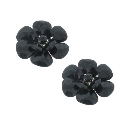 אפליקציה בצורת פרח מורכב מחרוזי פלסטיק בצבע ג'ט שחור