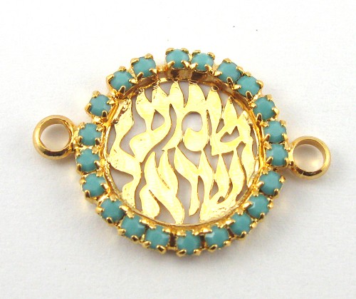 Yellow gold plating with torquise stones, with 2 loops for bracelet or necklace.