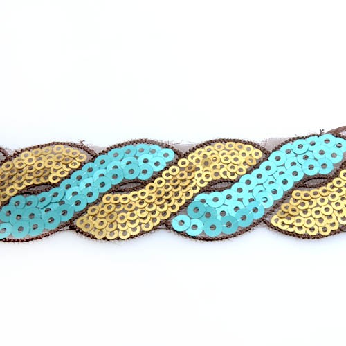 סרט גלים מפייטים ובד, בצבעי טורקיז וזהב