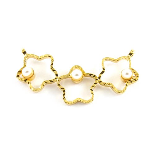 תליון 3 פרחים משובץ + 2 חוליות 28.70×10 מ"מ, צבעי אבנים לבחירה: לבן פנינה / קרם