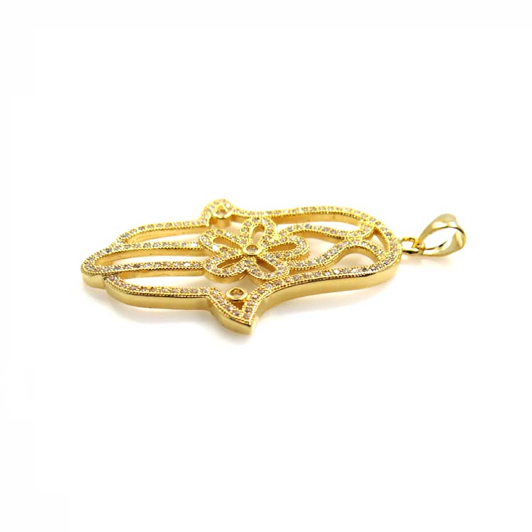 תליון חמסה עם פרח באמצע משובץ אבנים 1יח